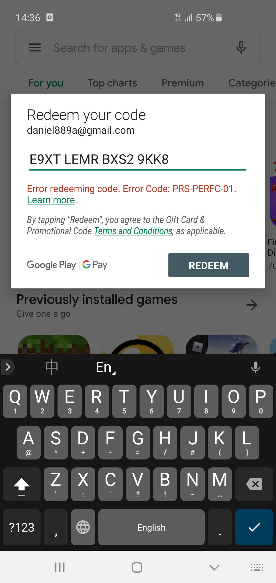 Di Google Play Saya Tulisannya Error Code Prs Perfc 01 Bagaimana Cara Redeem Code Nya Komunitas Google Play